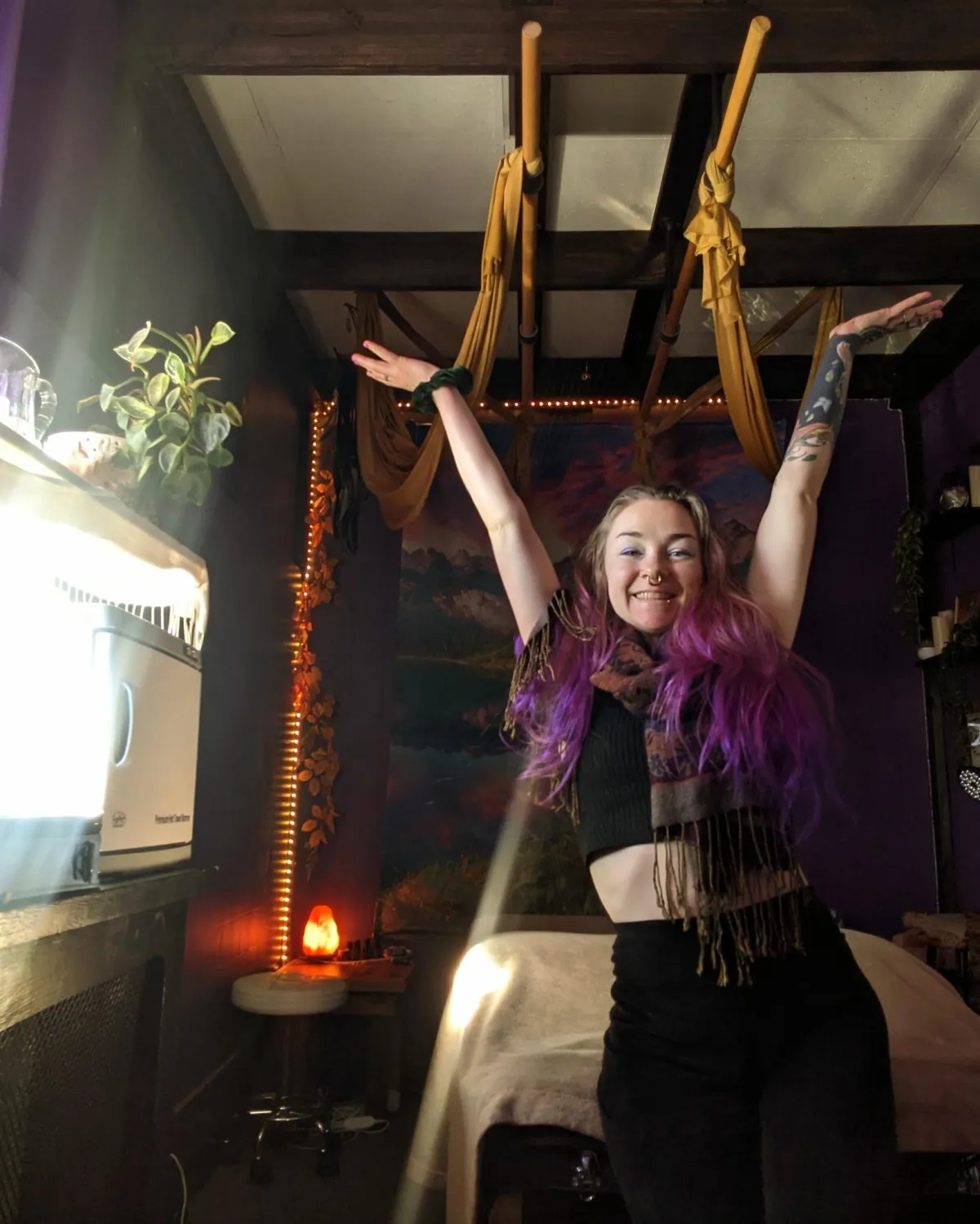 My whimsical studio provides an inspiring and serene environment where you can take a break from the chaos of the outside world. With nurturance and careful expertise that addresses all aspects of your being, it is my honor to help facilitate the somatic healing you may be seeking.